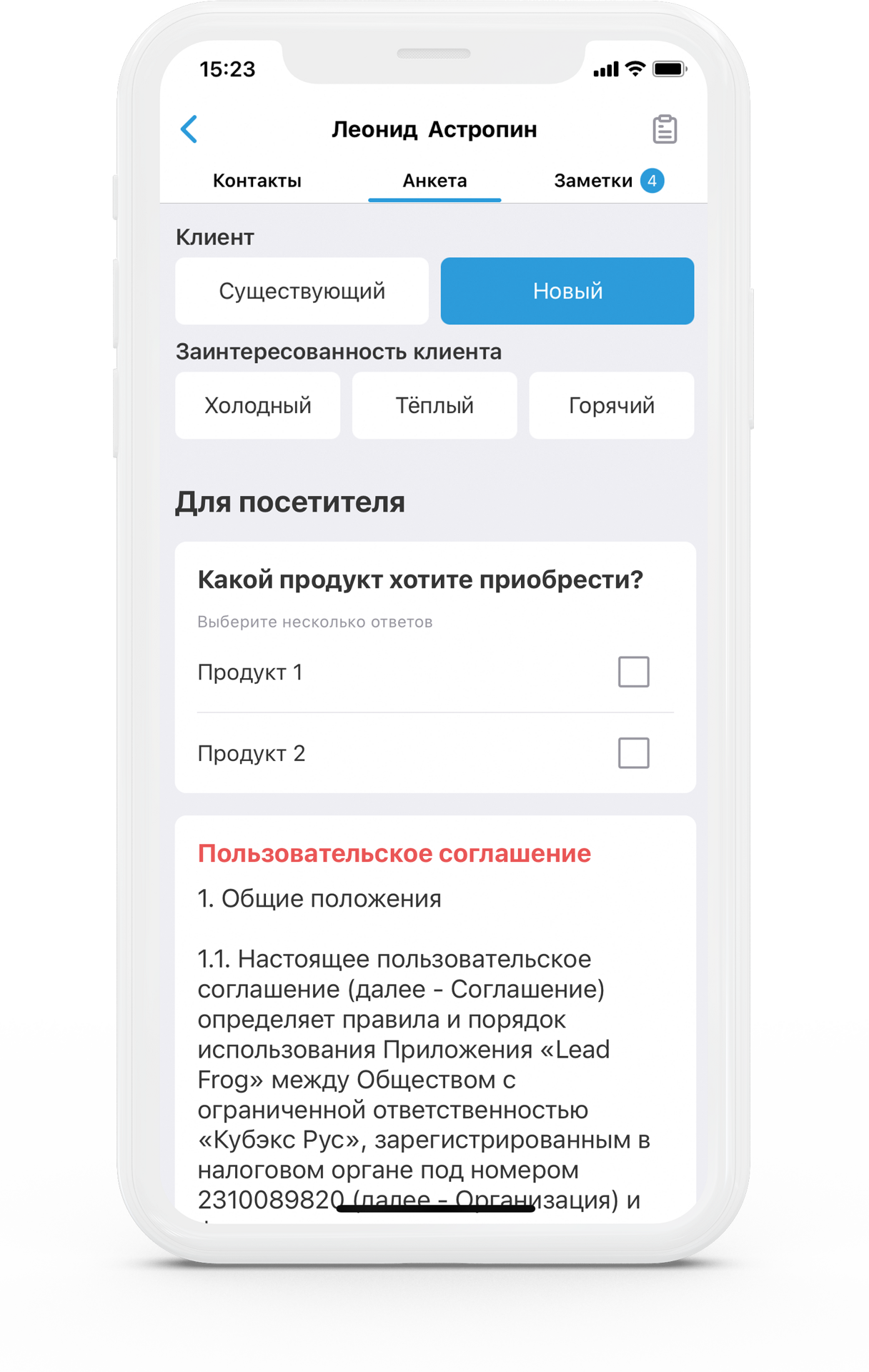 «С Leadfrog я могу быстро и просто сохранить все самые важные данные по встрече с клиентом»