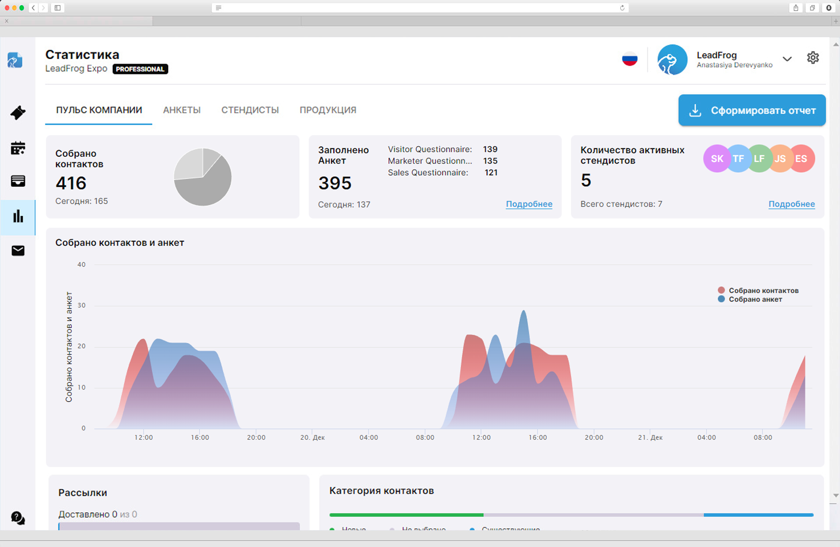 Все собранные контакты сохраняются в личном кабинете.